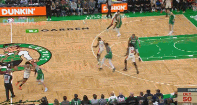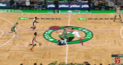 挡拆后踩着杰伦-布朗和霍福德的缝隙,借用一个小西班牙挡拆上篮