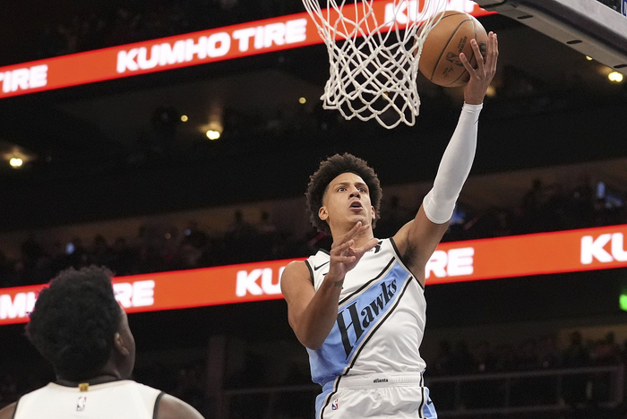 杰伦-约翰逊单场21分15篮板7助攻2抢断2盖帽 本赛季约基奇后首人