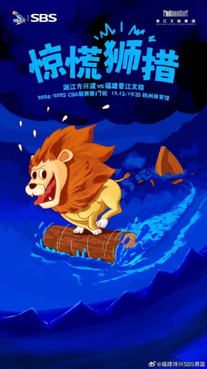 2024-2025赛季CBA常规赛第十七轮明晚继续打响,福建晋江文旅男篮明晚(12月13日)19:35客场挑战强队浙江方兴渡男篮。