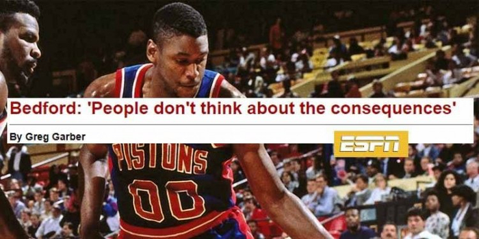 贝德福德在1986年首轮第6顺位被选中,但他并没有打出自己的潜力,NBA生涯只有7个赛季。这位7尺长人最终靠毒品谋生,2001年他走私了25磅大麻,却不知为何躲过了监禁,但2003年他再次被捕,被判处10年监禁,直到2011年获准假释。