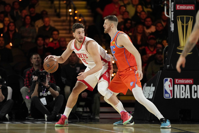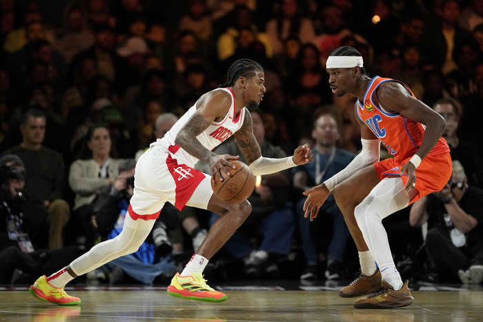 雷霆难在霍姆格伦伤停,现有阵容只有哈尔滕施泰因单中锋,替补阵容用198公分空间型内线肯里奇-威廉姆斯打5号位;乌度卡在申京休息时摆亚当斯/史密斯,火箭的前场体型优势(申京、亚当斯、史密斯、阿门)统治了篮板球。