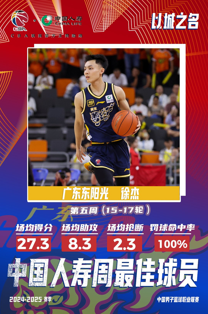 【徐杰当选2024-2025赛季CBA联赛常规赛第五周中国人寿周最佳球员】