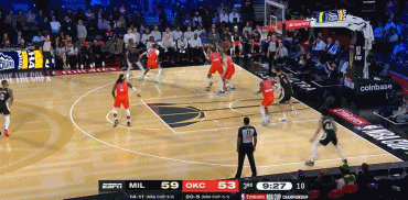 一通乱战!字母哥多特倒地拼抢 雷霆连吃2T&利拉德一回合笑纳5分