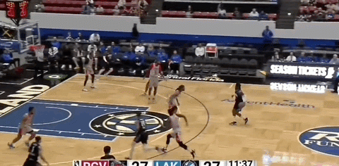 左手运球突到禁区内的跑勾,对手甚至都没反应过来,等球过头顶了才下意识地起跳