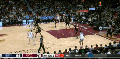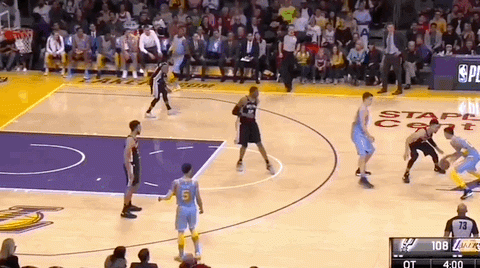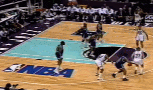 辛苦训练的成果自然是显著的。辛普森几乎要把勾手玩出花,左手和右手都能勾,合不合球都能勾,禁区里面能勾,边线和底线一样能勾。他还把勾手衔接上了自己的面框脚步,从欧洲步勾手到跳步勾手,再到突破时的单脚发力勾手,几乎囊括了一切控卫能使出的技巧。