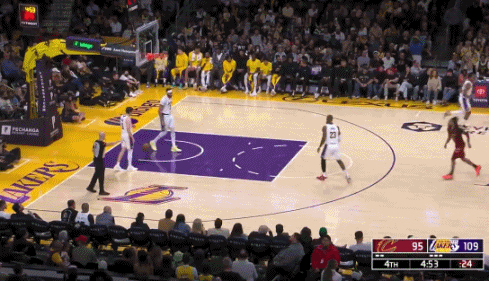 1、詹姆斯为了让小里滚球,第一阶段先是跟加兰多次对抗卡位,然后第二阶段做了一个移动掩护,利用规则成功地消耗了一波比赛时间。