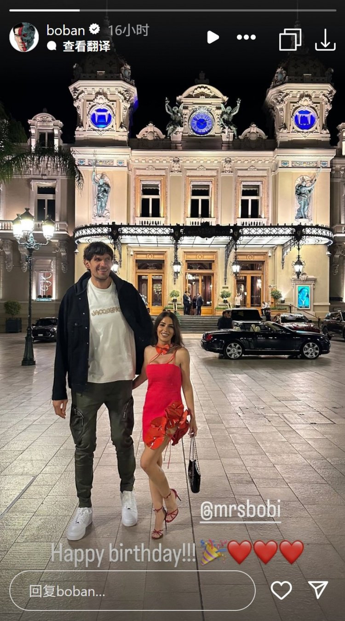 直播吧12月30日讯 今日前NBA球员、广厦新外援博班更新INS祝妻子生日快乐。