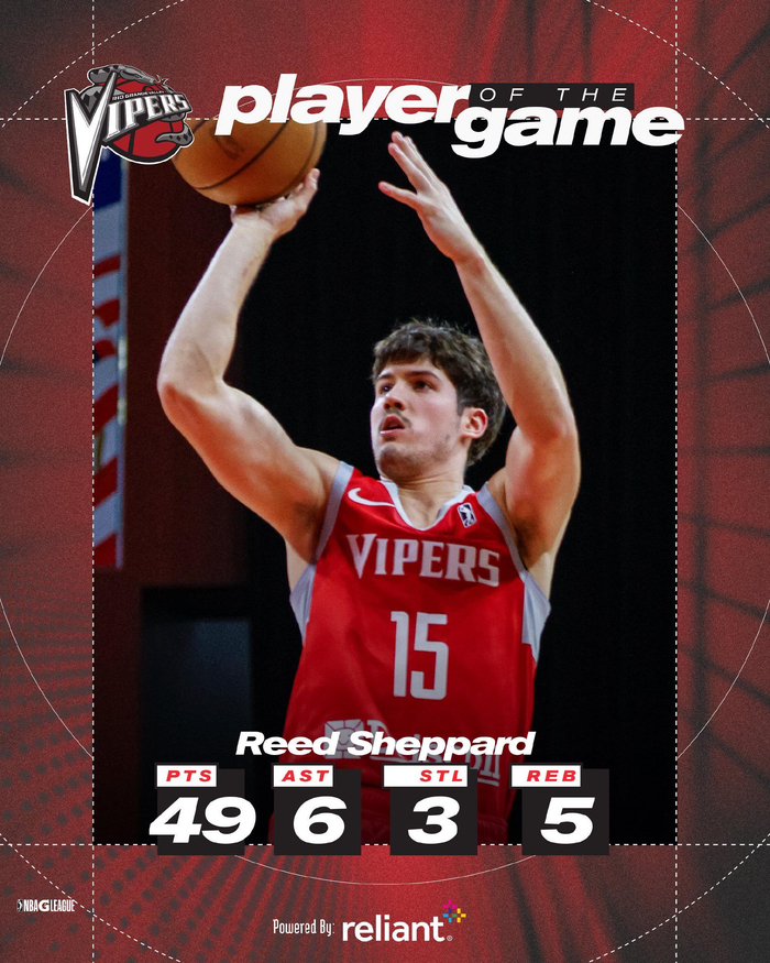 谢泼德49分为G联盟本赛季至今的第二高分,仅次于灰熊新秀卡姆-斯潘塞的51分(去年12月3日)。