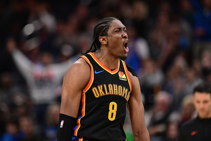 威廉姆斯用非凡的防守全面性补充了这种进攻价值。威廉姆斯不会每晚都防守对手的头号威胁——雷霆队有卢-多特(以及卡森-华莱士、亚历克斯-卡鲁索等等)来做这个——但是身高6英尺5英寸(约合1.96米)的他每晚都能胜任雷霆队主力大前锋的角色,而且由于切特-霍姆格伦、以赛亚-哈尔滕施泰因和杰林-威廉姆斯的先后受伤,他甚至在本赛季前半段的大部分时间里都客串小球阵容的中锋。雷霆队在没有任何真正大个子球员的情况下打了将近400分钟,而威廉姆斯正是最后一道防线;他们赢下了这些时间,防守处于前十的水平,并且在高压、破坏性的风格下,迫使对手的失误率高达20%,这在一定程度上得益于威廉姆斯能够与更高大的对手进行对抗的能力。