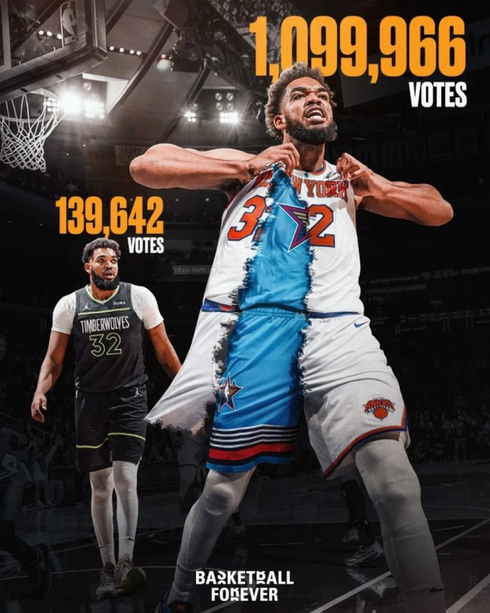 改穿尼克斯队球衣后,唐斯场均能轰下25.3分14个篮板球和3.3次助攻,得分比上赛季在森林狼多了3.5分,篮板球更是多了5.7个,目前正在领跑联盟总篮板榜,投篮命中率是生涯新高的55.2%,三分球命中率同样是生涯新高的45%,个人效率值也从18.8蹿升到了26.9。在全明星投票的第二轮结果中,唐斯位列东部前场第三,个人得票数同比增长了6.75倍!