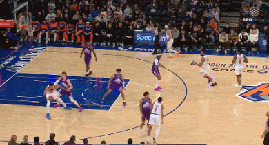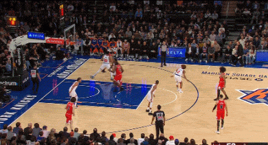 如果非要说有什么美中不足的地方,那就是唐斯似有若无的有球掩护质量,始终没能给予布伦森像哈腾和米罗那样的帮助,虽然在数据统计里,他们两大核心的挡拆进攻效率极佳,但这主要得益于他们各自的终结能力都足够强。