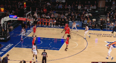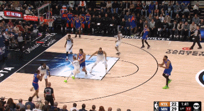 布里奇斯是名副其实的无球进攻高手,还练就了一手精准的中距离后仰跳投,总是能跑到合适的位置上,为唐斯提供传球选择。