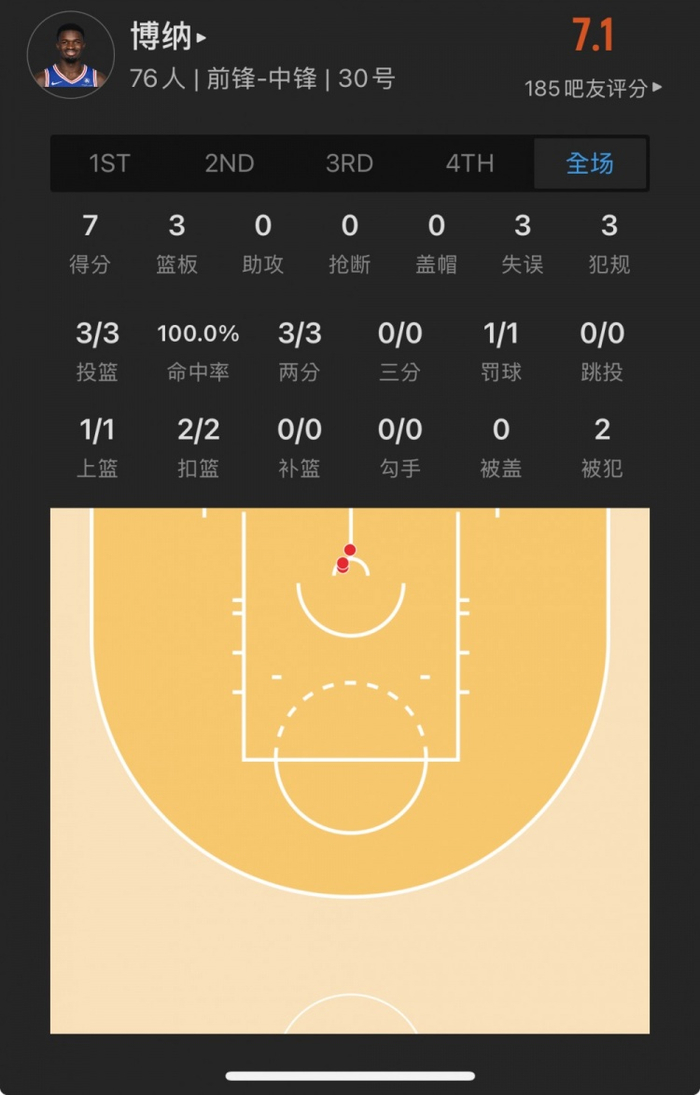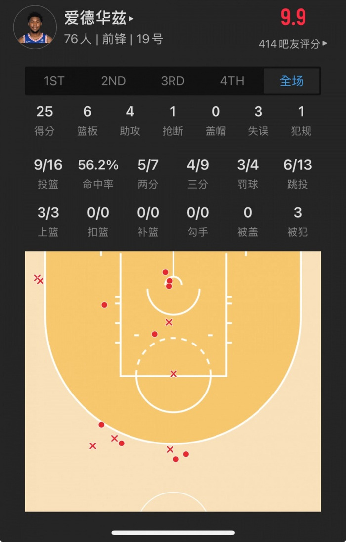 76人41号秀 阿德姆-博纳 登场16.6分钟