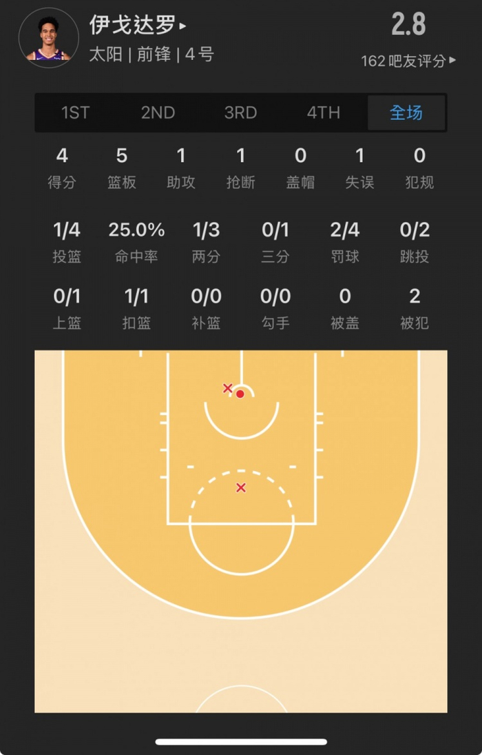 太阳40号秀 奥索-伊戈达罗 登场19.2分钟