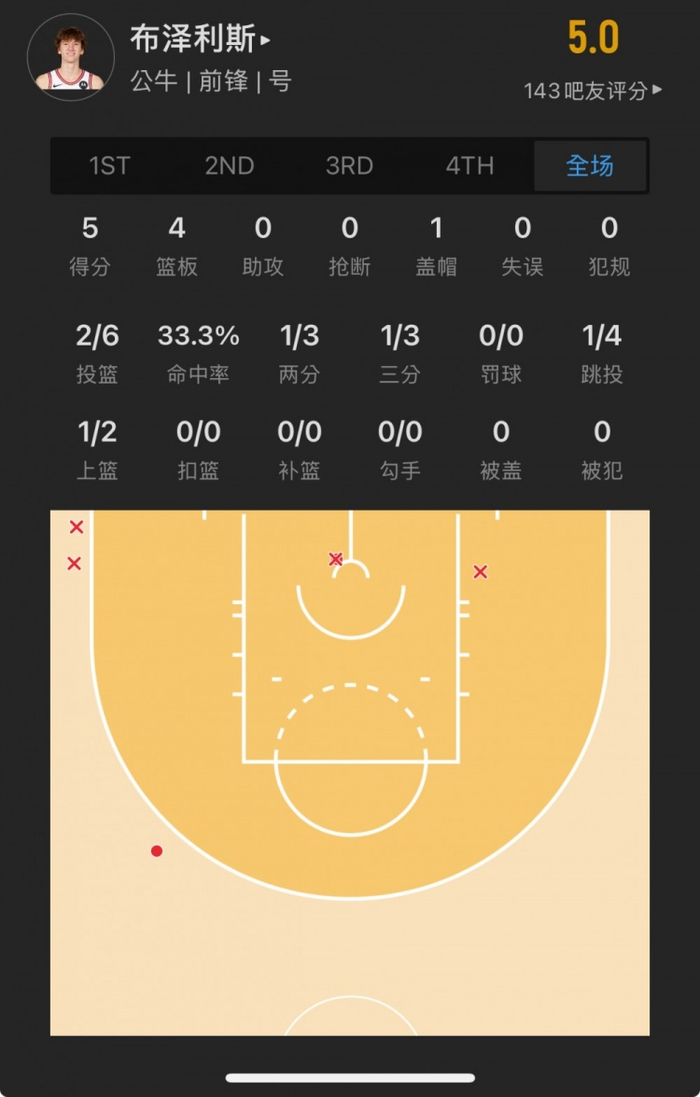 公牛11号秀 马塔斯-布泽利斯 登场11.9分钟