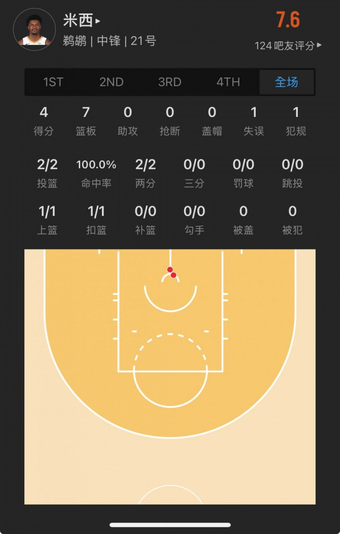 鹈鹕21号秀 伊夫-米西 登场16.6分钟