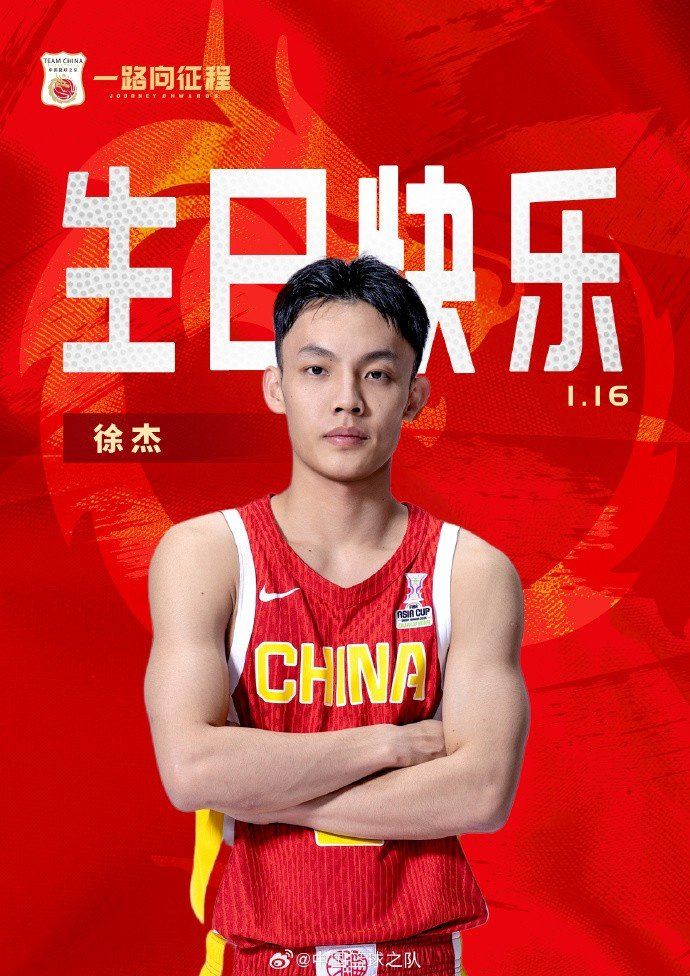 直播吧1月16日讯 今天是广东男篮后卫徐杰的25岁生日,中国篮球之队官博为其送上祝福。