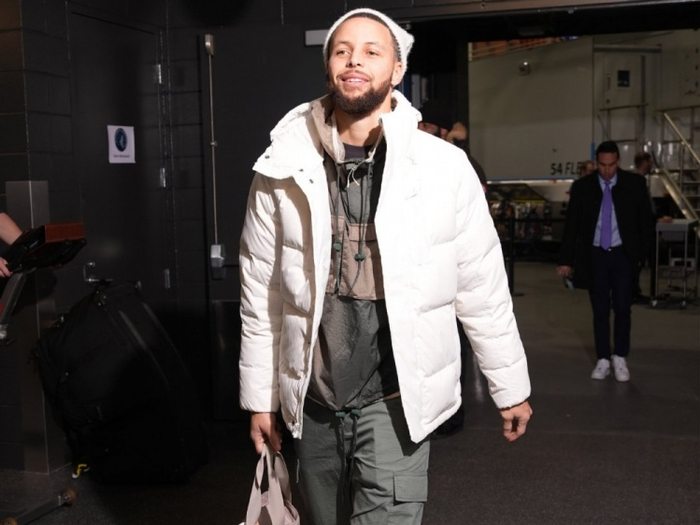 勇士入场穿搭:库里极简米色羽绒服+小帽 卢尼这身好酷