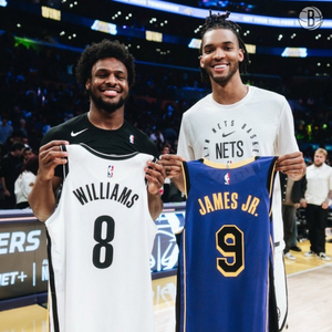 赛后,扎伊尔-威廉姆斯和布朗尼-詹姆斯交换球衣。