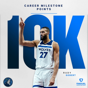 本场比赛过后,戈贝尔常规赛生涯总得分突破10000大关。
