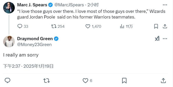 刚刚,曾经拳击普尔的追梦转发了普尔这则言论,并附上一句:“我真的抱歉。”