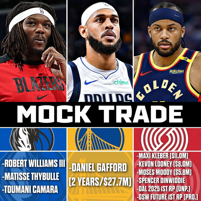 开拓者得到:克莱伯+卢尼+穆迪+丁威迪+25不受保护首轮(来自独行侠)+未来一个首轮(来自勇士,受保护)