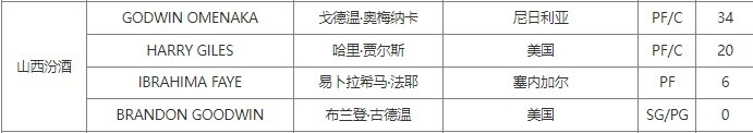 与此同时,山西队新增注册了新外援戈德温-奥梅纳卡,他们仍然坐拥四外援。目前山西24胜7负,暂列第三位。