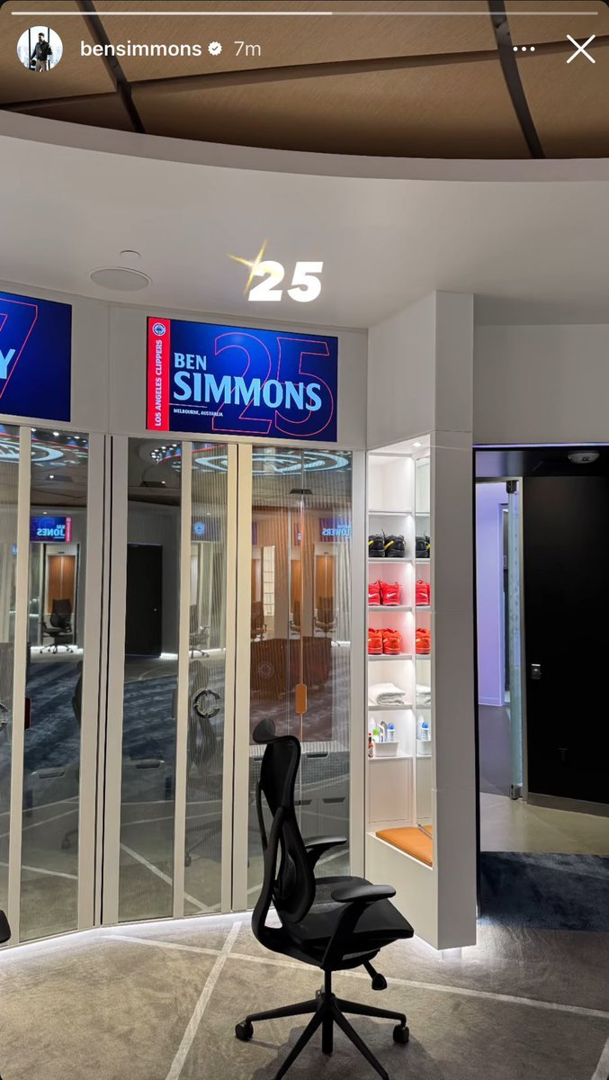 本西在个人IG上晒出了自己的快船更衣柜照片,并且透露自己将身穿25号球衣。