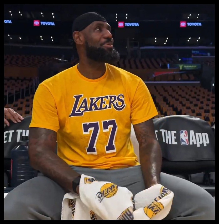全是爱!詹姆斯身穿东契奇77号T恤热身 感觉老詹都变年轻了