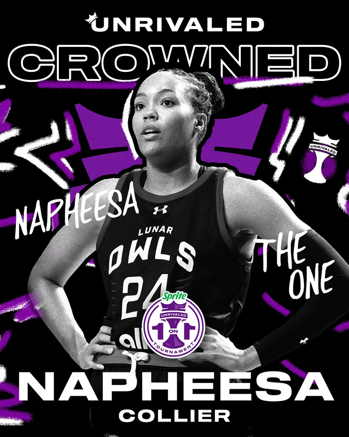 直播吧02月15日讯 由WNBA上赛季冠亚军核心布里安娜-斯图尔特&娜菲莎-科利尔,创建的全新女篮联盟Unrivaled的首届1v1大赛,今日圆满落幕,科利尔在决赛中击败了自己的康大学妹、上赛季新秀艾莉娅-爱德华兹拿到冠军,收获接近WNBA目前一年顶薪金额的20万美元,并帮助自己Unrivaled效力俱乐部月亮猫头鹰的队友各获得1万美元。