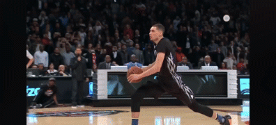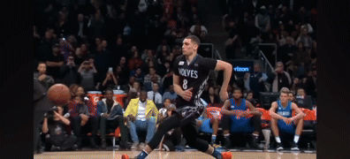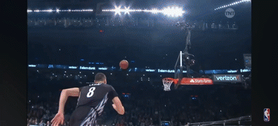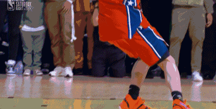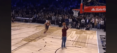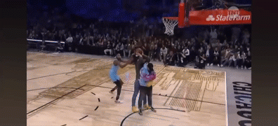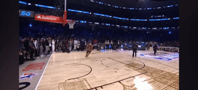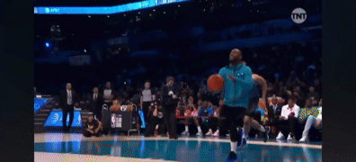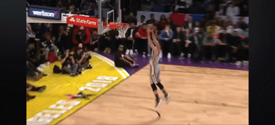 阿隆-戈登跨过说唱歌手Chance the rapper,空中扭腰反扣。