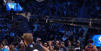 阿隆-戈登跃过说唱歌手Chance the rapper,接球180度单臂反扣。