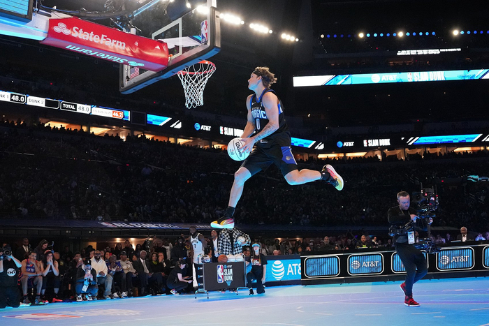 NBA2025年旧金山全明星扣篮大赛,麦克朗以四扣满分的绝对统治力,实现扣篮大赛三连冠。