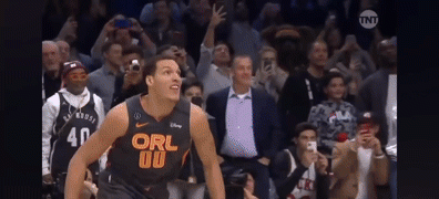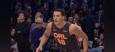 阿隆-戈登跃过说唱歌手Chance the rapper,空中胯下换手扣篮。