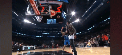 卡斯尔空中背后绕腰换手拉球扣篮。