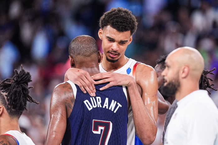 去年夏天,当代表法国男篮的维克托-文班亚马在其家乡举办的奥运会上距离金牌仅差一场胜利时,他感到很难过……为那些挡在他和他的目标之间的对手感到难过。