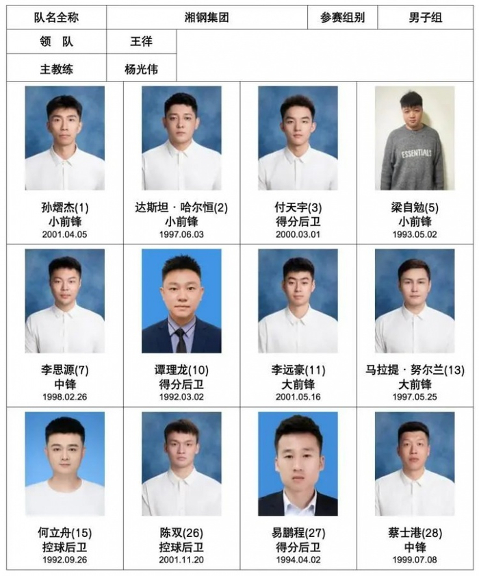 湘钢集团篮球队成立于1984年,因成绩优异,1988年成为湖南省省篮球队。湘钢篮球队现有球员13人,均从全国各大院校招揽而来。队伍继承了老湘钢篮球队迎难而上,每球必争的优秀品质。球队不断秉持着善于学习、不断创新、争创一流的企业精神,在技术风格上一直遵循“快,准,拼”的特点,强调以防守逼迫对手,进行快攻反击的战术风格。在众多比赛中形成了执行力到位,团结拼搏的球队作风。