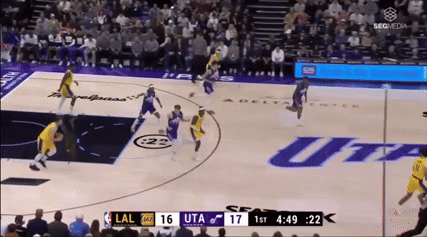 在背靠背对战爵士的两场比赛中,我们很难在此有太多的收获。爵士的防守效率排名联盟第28,他们的目标放在了2025年的选秀大会上。湖人主帅雷迪克反复指出,爵士的主要防守方式是换防,这使得他们在面对爵士最慢、最弱的防守者时,也没能占尽优势。