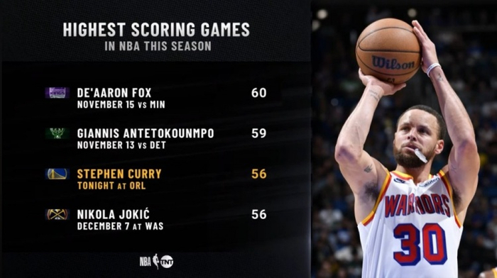 平约基奇!库里56分是联盟本季第3高 仅次福克斯60分和字母哥59分