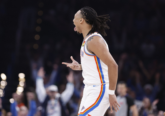 直播吧3月8日讯 NBA常规赛今天继续进行,雷霆在主场迎战开拓者。半场结束时,雷霆63比45领先。