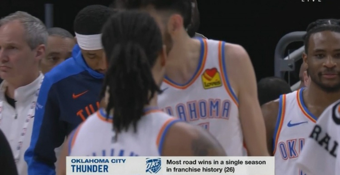 势不可挡本赛季雷霆客场已取得26胜 创队史单赛季客胜纪录