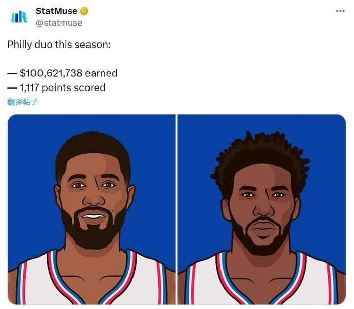 👀双双赛季报销!恩比德与乔治本赛季合赚1亿多 共砍下1117分