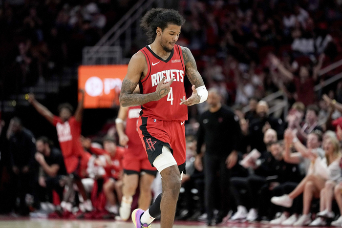 直播吧3月18日讯 火箭今日主场经历加时,144-137险胜76人。赛后,火箭后卫杰伦-格林接受媒体采访。