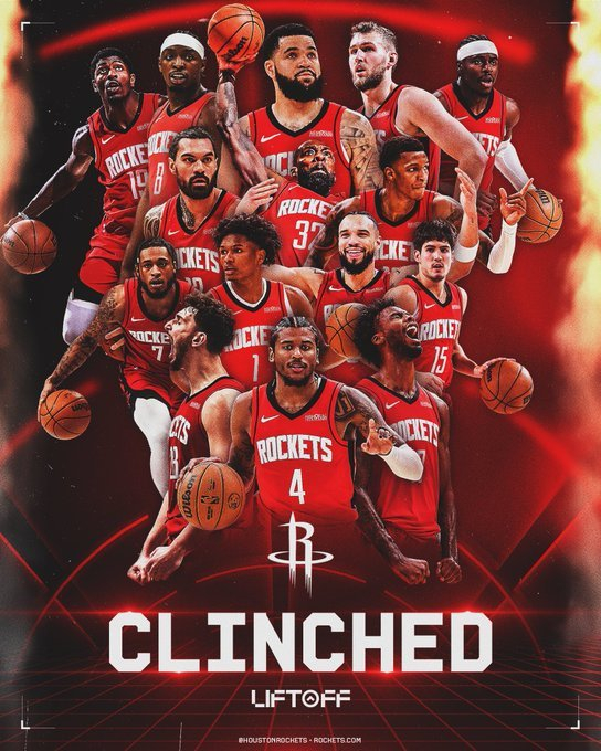 此战之后,火箭的战绩来到了45胜25负,本赛季他们至少能打附加赛,为此火箭官推专门制作了海报,庆祝这一时刻。