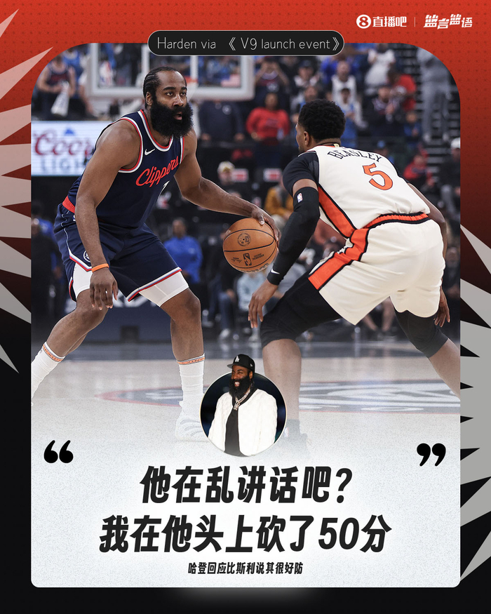 今日,哈登出席了自己第9代签名鞋的发布会,在发布会上这位主持人同样到场和哈登聊了两句。在谈到比斯利的言论时,哈登表示:“他在乱讲话吧?我在他头上砍了50分(HE WAS TALKING SH**, HUH? GAVE HIM 50.)”