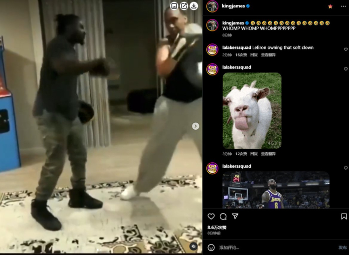 詹姆斯转发了A-史密斯练拳的视频并写道:“喔!沃!ho!!!!🤣*14”