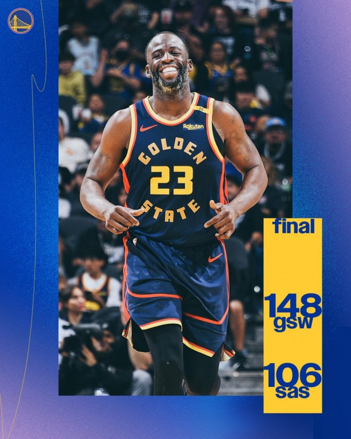 赛后勇士官方赢球海报封面人物给到了追梦格林。