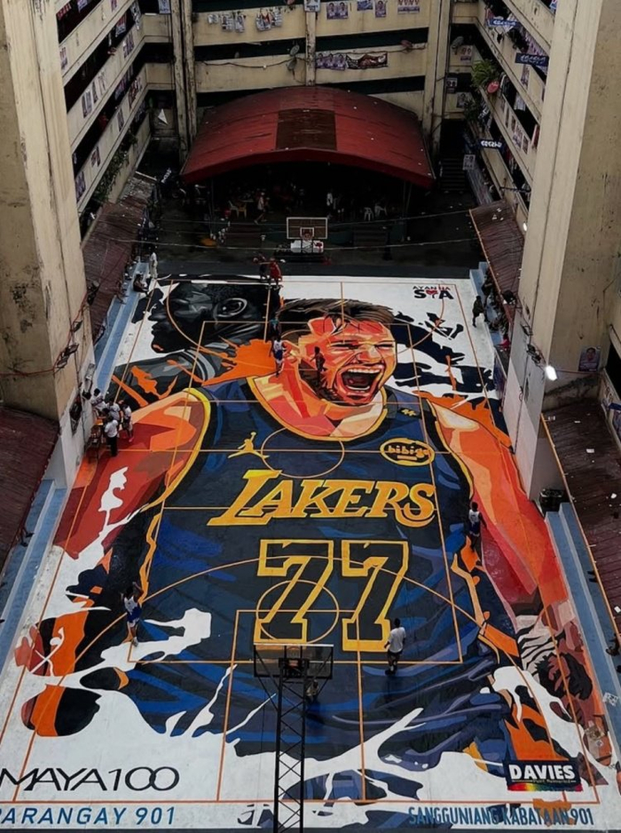 看到老詹了吗!国外野球场“东皇”主题球场 东契奇面积99%+