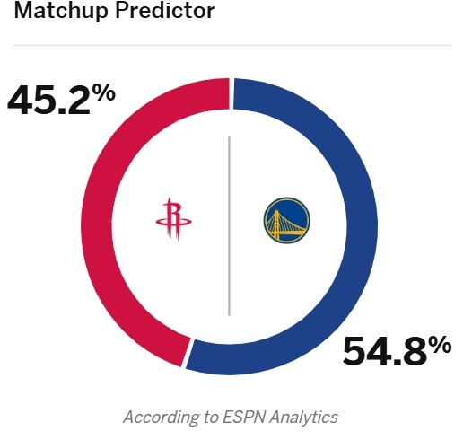 火勇大战来袭!ESPN预测明天胜率:勇士54.8%占优 火箭45.2%