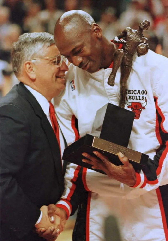一年后公牛69胜蝉联冠军。乔丹第五冠(平魔术师)、第五个总决赛MVP(至今只他一人达到的高峰)。